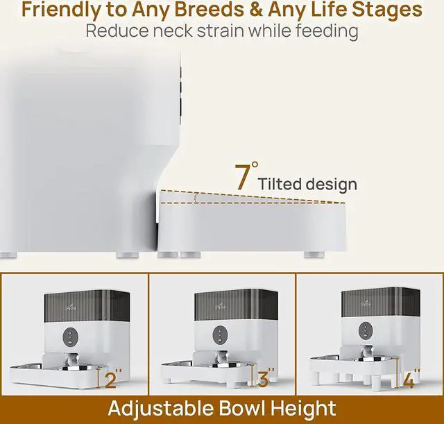 Friendly to Any Breeds & Any Life Stage: The 7° tilted and elevated food tray reduces your pet's neck strain while eating. There are three adjustable heights to meet different heights as your pet grows.