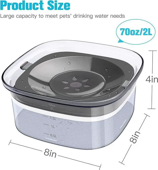 Large Capacity: Holds 70oz/2 liters large capacity dog water bowl is great for dogs and multiple pet households water needs, no need to replenish the water frequently. Keep your pets drinking enough water.