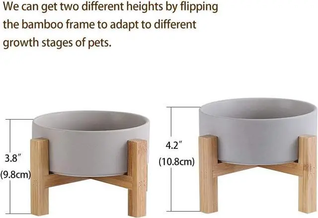 Adjustable HeightWe can get two different heights by flipping the bamboo stand, the elevated cat bowls are perfect for cats and small dogs from different stages of childhood to adulthood, which is very convenient and practical.