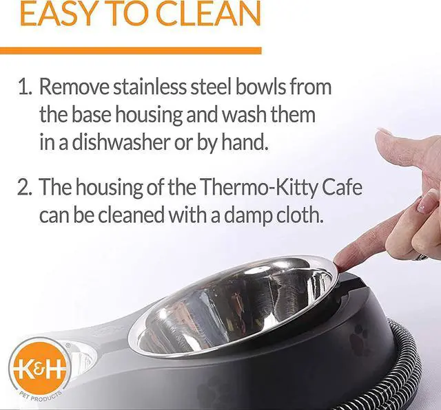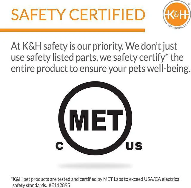 SAFETY: This 30-watt heated cat food and water bowl has been tested & certified by MET Labs and exceeds USA/CA electrical safety standards; K&H doesn't just use safety listed parts, we safety certify the entire product