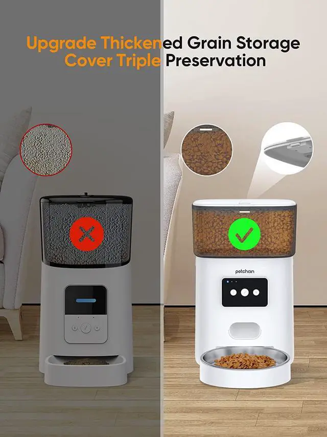 APP CONTROL: Automatically feeding by schedule and manual feeding via mobile App (iOS and Android). You can easily choose the feeding method you like.