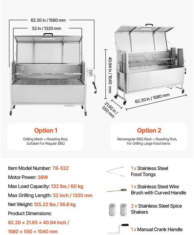 Max Grilling Length: 52 inch/1320 mm