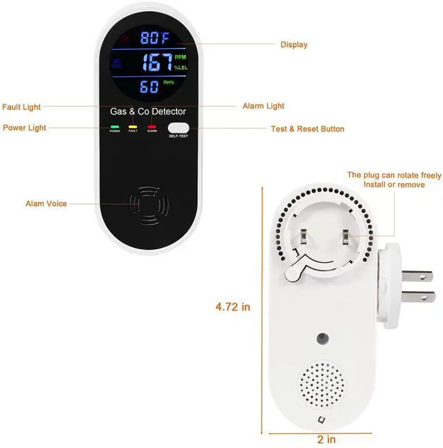 4-in-1 Sensor 0-1000PPM, 0-10%LEL, 0-99RH%, 1-176°F | 4-in-1 Sensor 0-1000PPM, 0-10%LEL, 0-99RH%, 1-176°F | AC-Plug-in Design Easy to install, save installation time. |