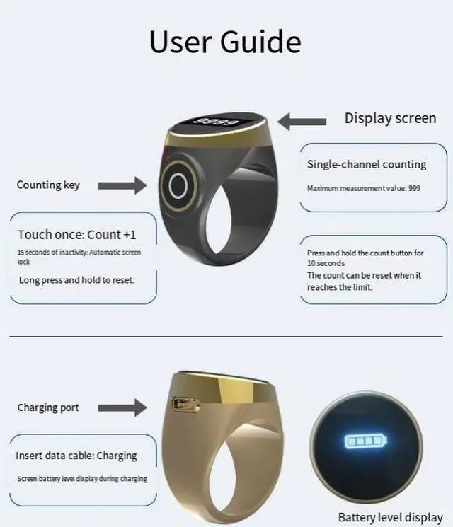 Traditional mechanical counters hurt your fingers after hundreds of clicks. The S9 Smart Ring Counter changes everything. With touch-sensitive technology, a crystal-clear OLED display, and a comfortable silicone ring, you can count prayers, mantras, reps, or habits effortlessly thousands of times without pain.