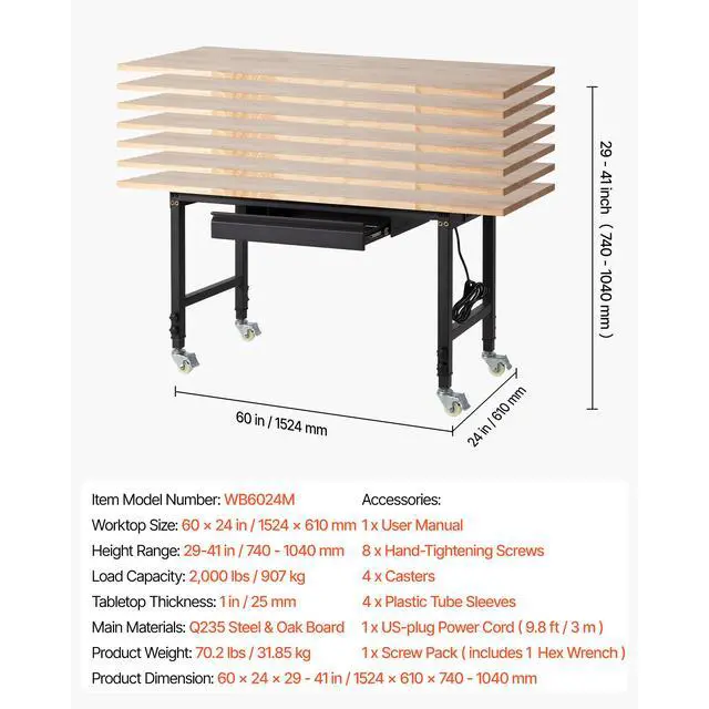 Product Dimension: 60 x 24 x 29-41 in / 1524 x 610 x 740-1040 mm