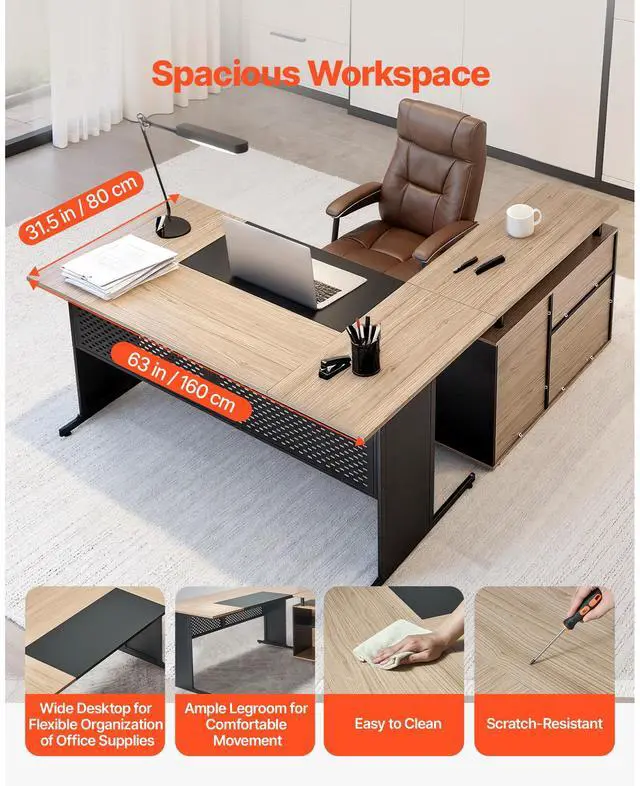 Desk: 63 x 31.5 x 29.6 in/160 x 80 x 75 cm