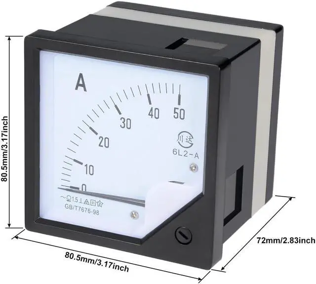 specifications Volumn: 80.5mm x 80.5mm x 72mm/3.17inch x 3.17inch x 2.83inch(L*W*T) Model:6L2 Net Weight:230g Working Range:AC 0~50A Graduation: 2A With blots and screw for fixing.