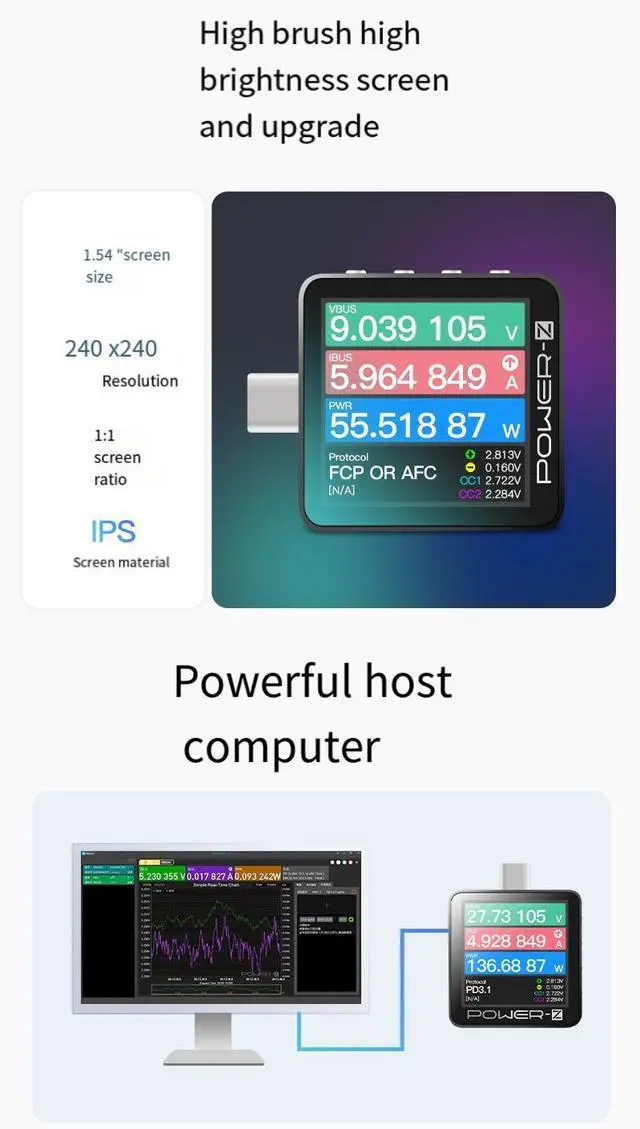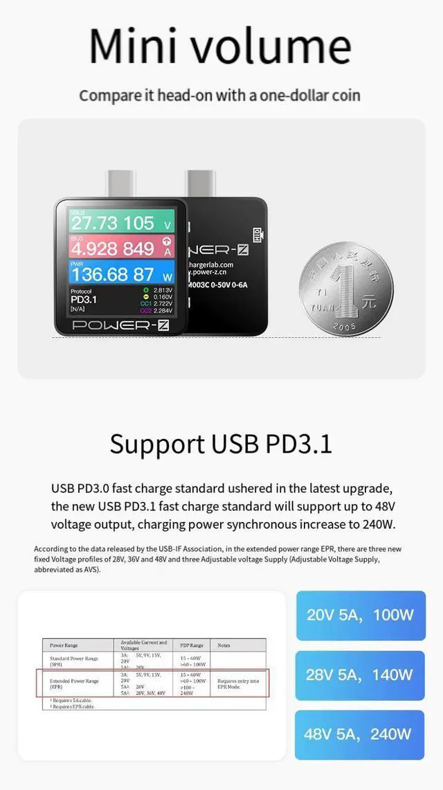 KM003C Voltage and Current Detector Tester Charger Power Supply - Z USB PD3.1 Protocol 48V Range Dual Type-C Tester