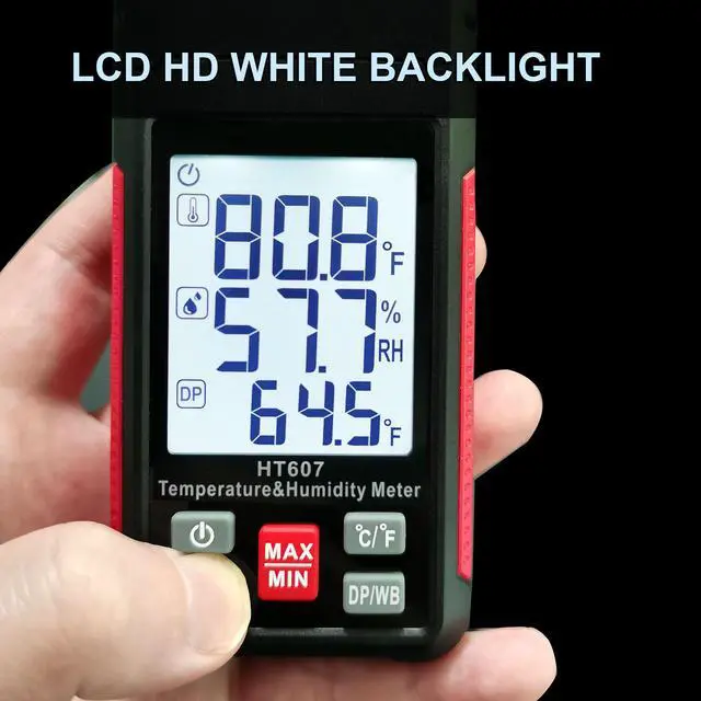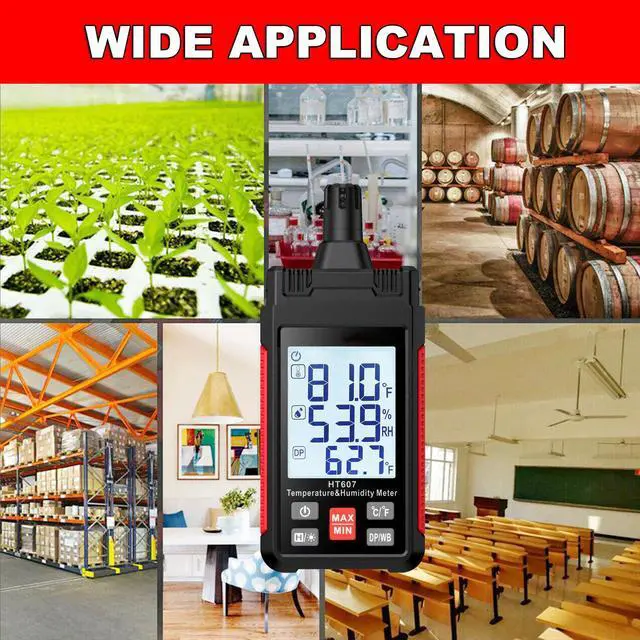 [Multiple Advantages] HT607 is a digital thermo-hygrometer with high-precision temperature and humidity sensor module technology. It uses calibrated sensor modules to reduce deviation and improve accuracy. It's lightweight, compact, ergonomic and user-friendly, making it an ideal tool for monitoring indoor agriculture, animal husbandry, warehouse storage, utilities, and many other fields. You can select the corresponding measurement mode according to your different measurement needs