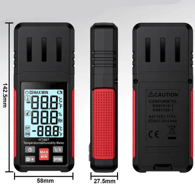 [What You Will Get] One HT607 Temperature Humidity Meter, one drawstring carry bag, three AAA batteries, and one user manual. If you have any questions, please contact us through Amazon internal information. We attach great importance to the buyer experience and will solve the problem for you in a timely manner