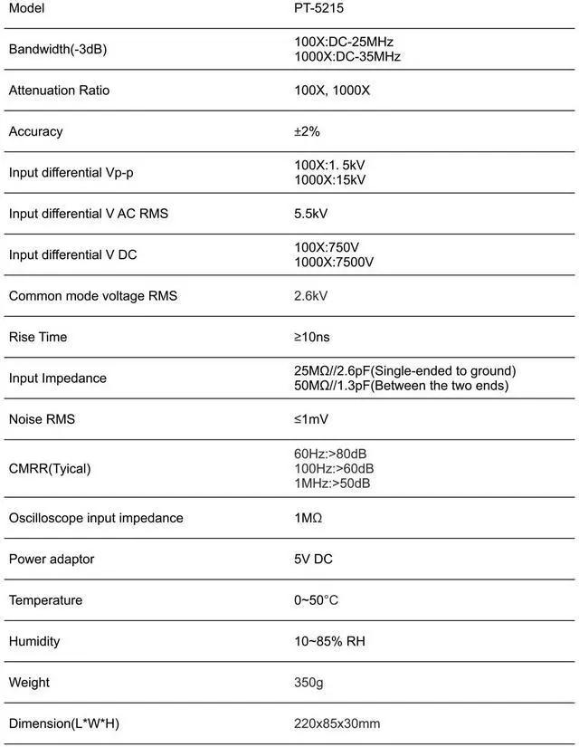 CMRR: 60Hz:>80dB; 100Hz:>60dB; 1MHz:>50dB
