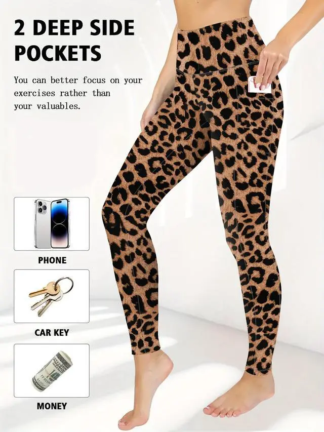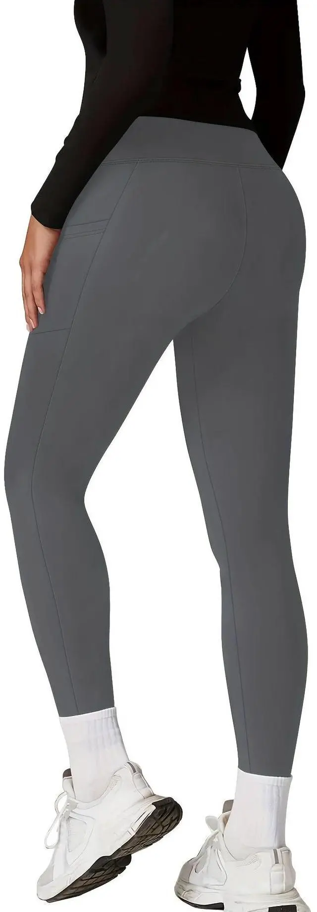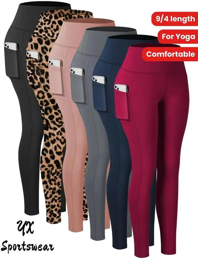 Women's High Waisted Yoga Pants with Pockets, Four Seasons, Comfortable & Skinny, Stretchy Polyester Spandex Blend, Elastic Waistband, Solid Color, Machine Washable, 9/4 Length, Sporty Style, Adult Wo