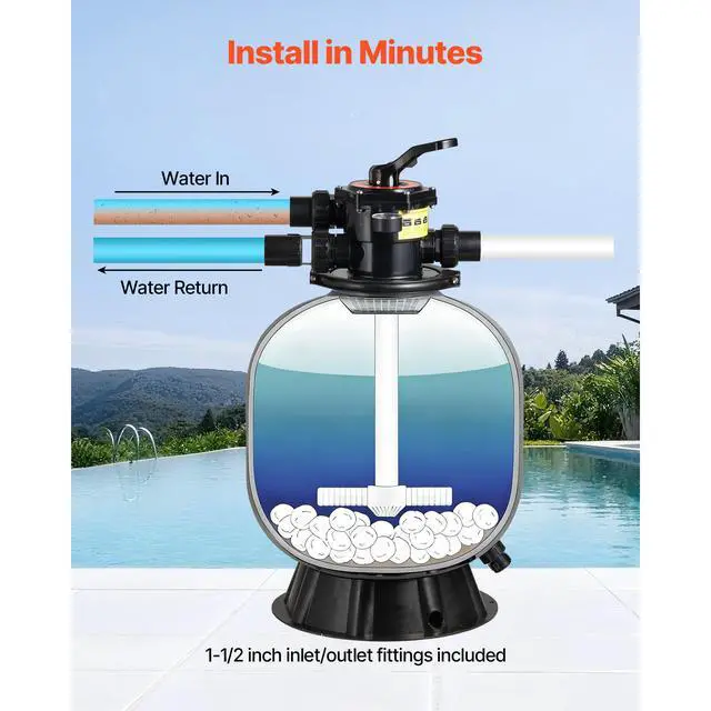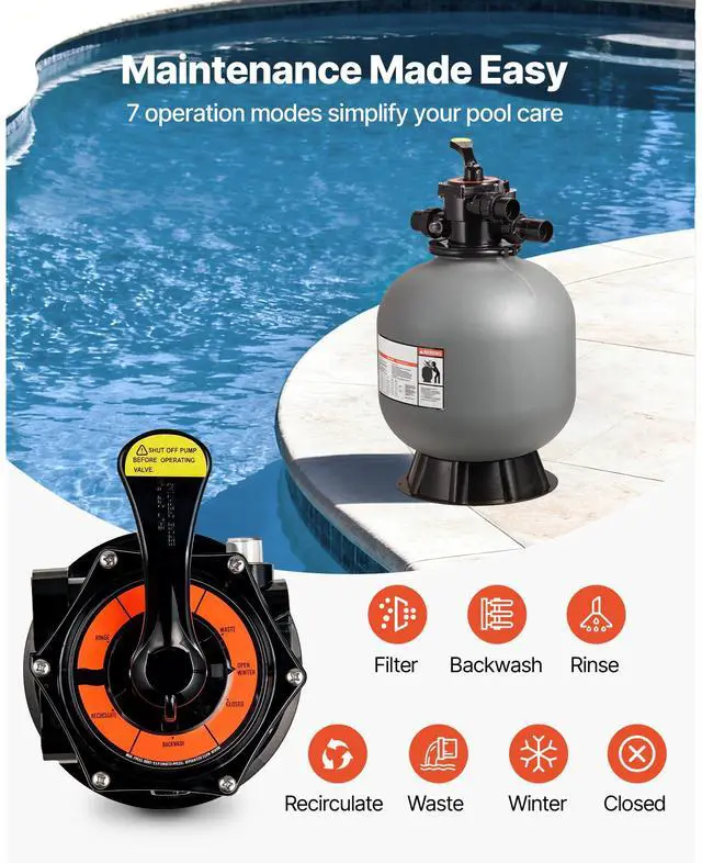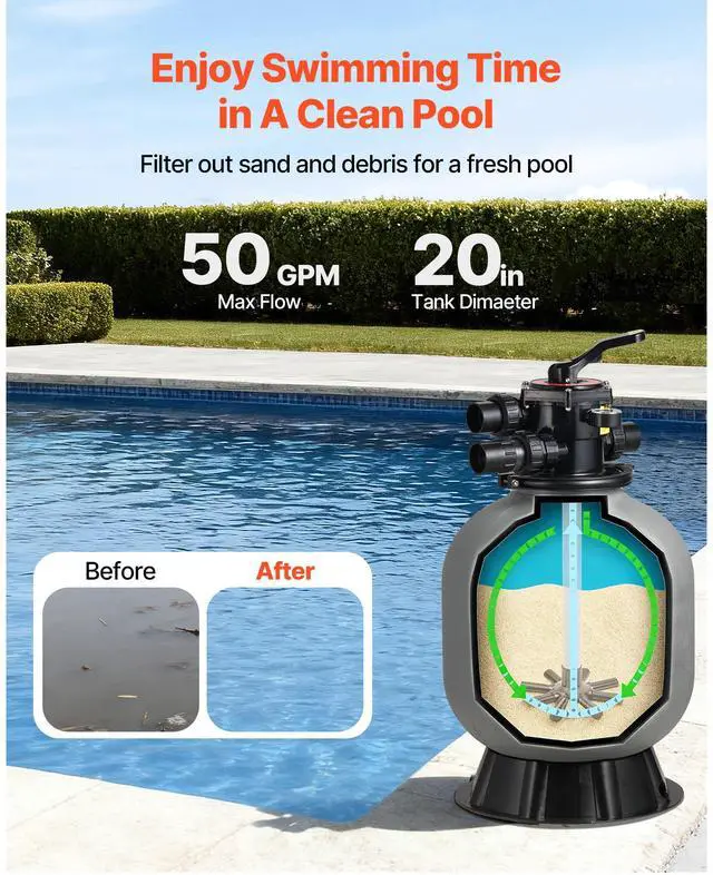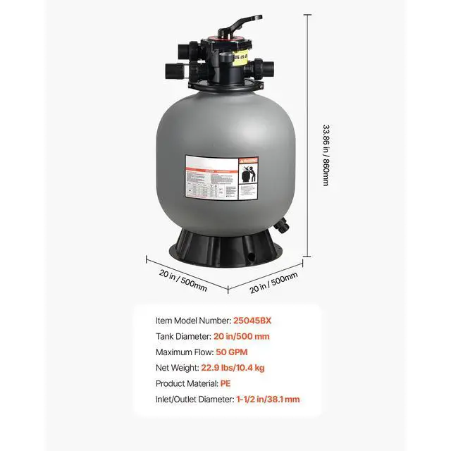 Sand Filter, 20-Inch, 50 GPM Above Inground Swimming Pool Sand Filter System, with 7-Way Multi-Port Valve, Backwash, Rinse, Recirculate, Waste, Winter, Closed Modes, for Above In Ground Pools