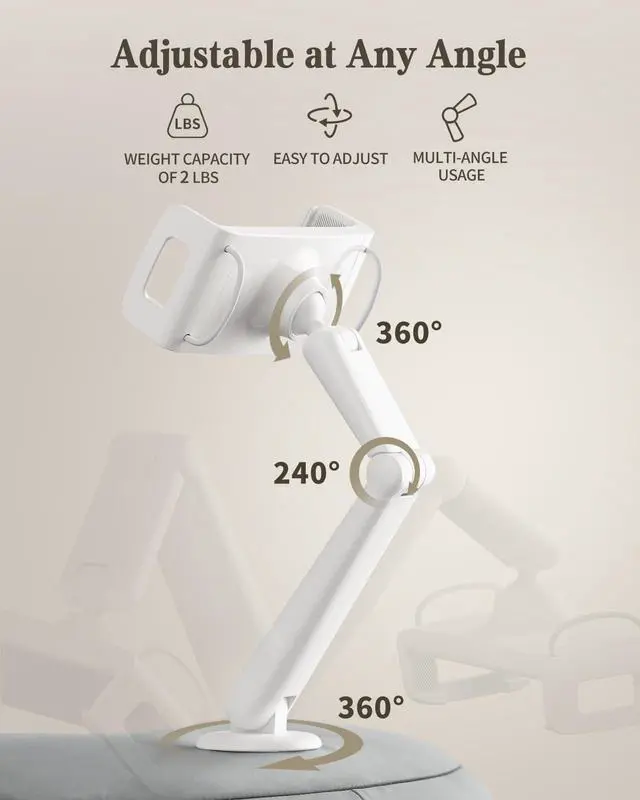 • [Dual-Axis Design]The kindle Colorsoft holder support arm has a dual-axis design that enables the bottom axis to rotate 360°, the middle axis to rotate 240°, and the clamp to rotate 360°, allowing users to adjust the angle according to their needs, so the phone stand can accommodate different usage scenarios, whether sitting, standing, or lying down.