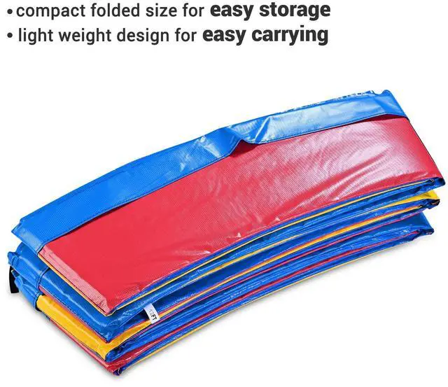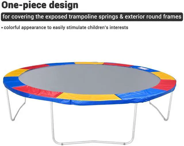 - Safe & Comfortable - Features one-piece design to fully cover the exposed trampoline springs and the entire frame without leaving any gaps, avoiding direct contact with the springs during the bouncing process, protecting children from potential injury; With 9/16" thick EPE sponge lining to prevent deformation for prolonged use, while providing comfortable jumping experience