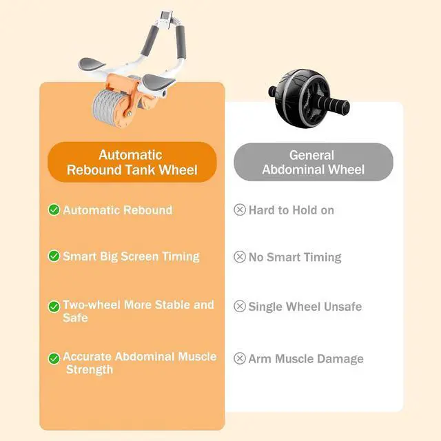 • Automatic Rebound Tech: This ab roller features innovative rebound tech with an intelligent brake system, ensuring smooth and safe workouts by protecting muscles from strain.
