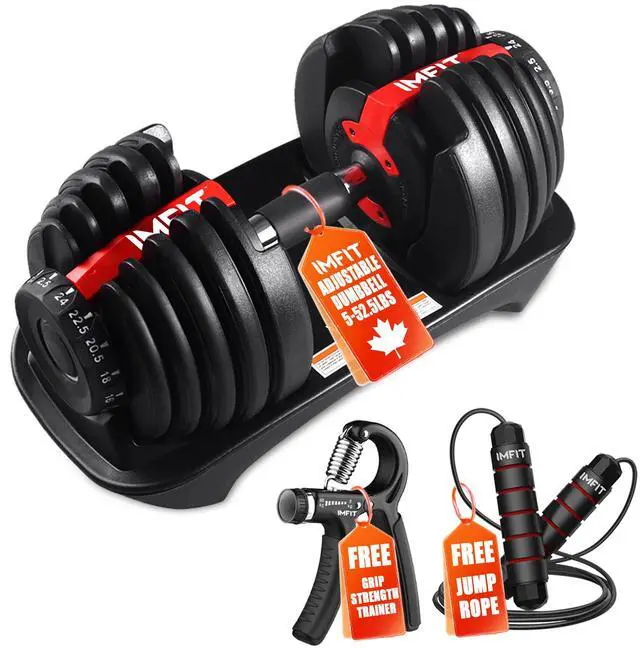 IMFit 5lb-52.5lb Adjustable Dumbbell with Free Hand Grip- Weight adjusts from 5 to 52.5 lbs. 15 Adjustable Weight Settings, Space Efficient Compact Design, Easily Switch Exercises
