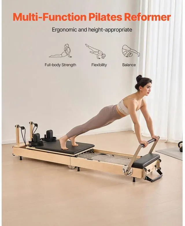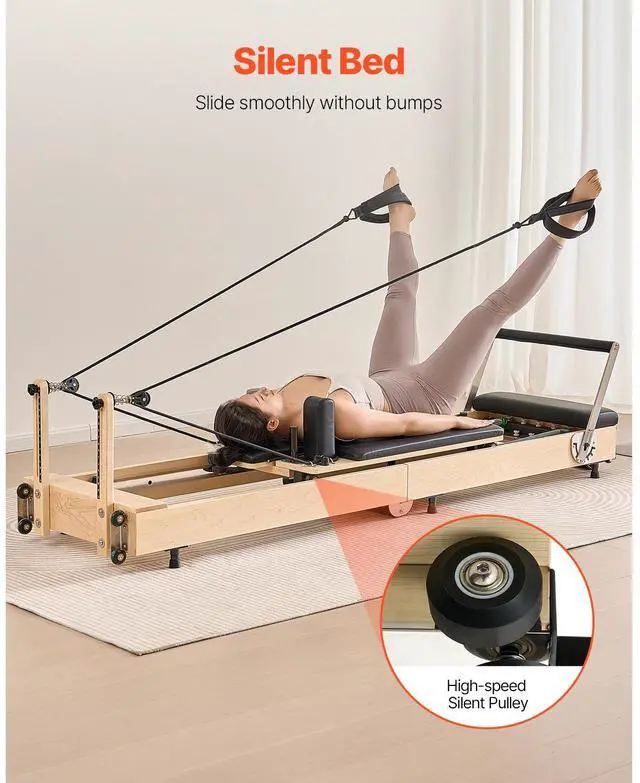 Premium Structure: Crafted with a natural, solid maple wood frame and a sleek interior, this pilates reformer can support up to 400 lbs. Its robust construction provides superior stability and support, making it perfect for daily meditation and exercise needs. The dimensions are designed to be ergonomic and height-adjustable for maximum comfort