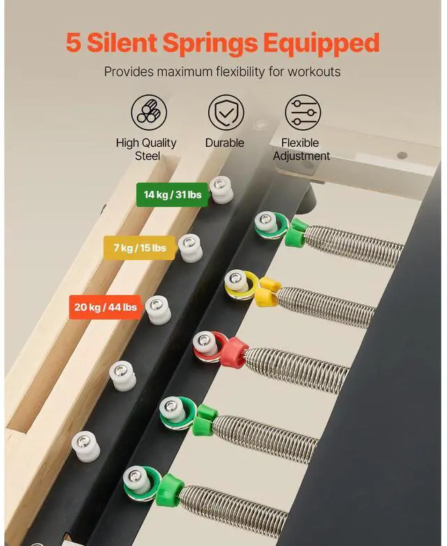 Premium Springs: With high-quality spring steel, this home workout pilates equipment offers 5 levels of spring resistance, ideal for working your upper body, lower body, and core muscles