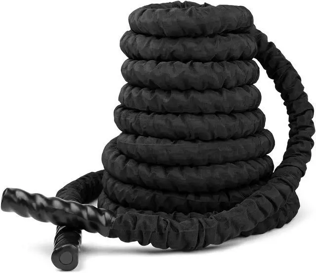 Spice up your routine with this battle rope, it engages your arms, hands, shoulders, legs, and hands. It is great for muscle training, strength training, and fat burning, also helps with your body coordination and flexibility. Its anti-friction nylon-coated sleeve and comfortable handles make it wear-resistant, corrosion-resistant, and won't burn your hands when you use it. It is effective, versatile, all you have to do is wrap it around a tree, or pole, grab the handles, and start sweating.