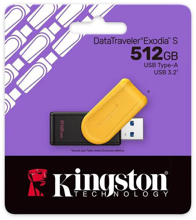Kingston DataTraveler Exodia S USB Flash Drive - 512 GB - USB 3.2 (Gen 1) - Black, Yellow - 5 Year Warranty