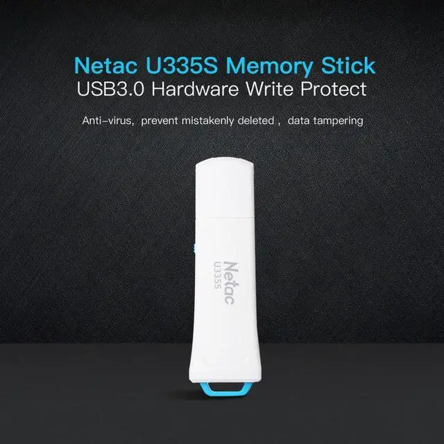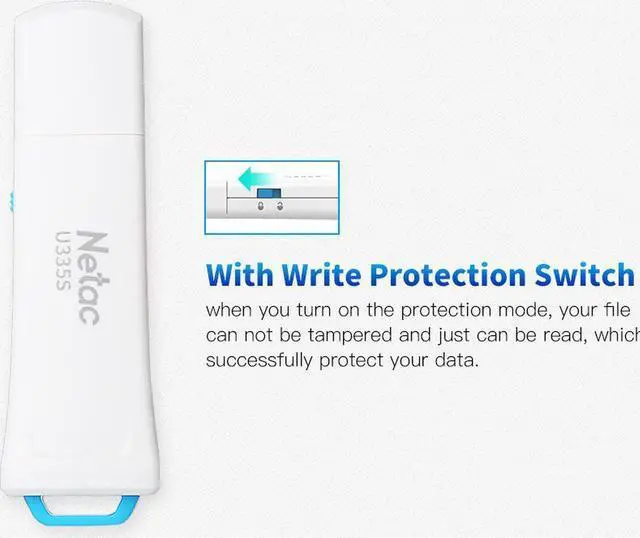Elevate your memory storage with Netac U335S flash drive. Featuring Write Protection Switch, when you turn on the protection mode, your file can not be tampered and just can be read, which successfully protect your data. Features With Write Protection Switch, preventing virus intruding and data tampering. Adopting U-Safe storage technology, protecting data from missing. High speed USB 3.0, faster data transmission. External storage, perfect for storing large file libraries consisting of movies, high-resolution images, music, renderings and more. Input secure software, encrypting your file.
