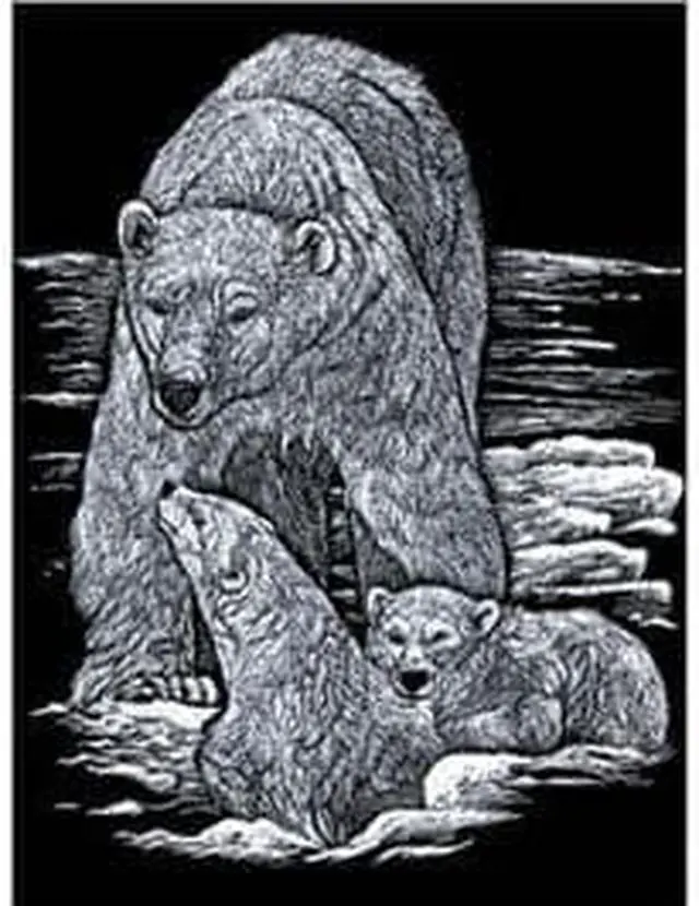 R-01315 - SILVER ENGRAVING POLAR BEAR AND CUBS...