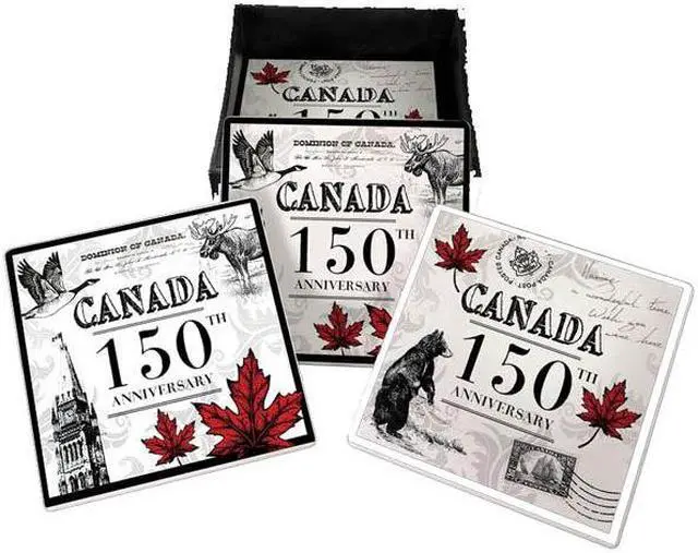 00879 - CANADA SOUVENIR COASTERS 150TH ANNIVERSARY (4 pcs/pkg)...