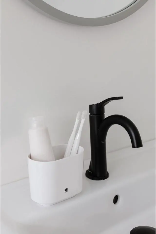 Step is made of the highly durable material melamine, meaning it is less likely to break in busy washrooms and kitchens. This modern and sleek toothbrush holder will hold your toothbrushes upright, ensuring they remain clean and dry after use. Step comes in your choice of white or black and its pump has a sleek, nickel finish. It measures 4 x 3 x 4 inches (12 x 7.5 x 10 cm). Pair this toothbrush holder with other accessories from the Step Bathroom Collection for a more cohesive look. China Design Patent No.