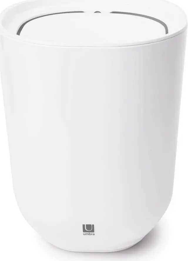 Step Can's crisp, clean, lines and glossy finish give it an elegant and modern look. It has bottom detailing that elevates the main body of this piece from the surface it sits on, giving it a refined, raised aesthetic. Step features an easy to remove, swing-top lid that helps keep garbage out of sight. Step holds 1.7 gallons ( 6.6 L) and measures 7 dia. x 10 inches (19 dia. x 26 cm). Its compact design makes it great for washrooms, under the sink, or under a desk.