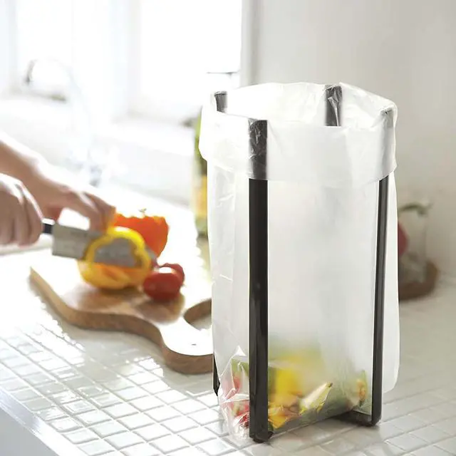 This stand can be used for drying rinsed bottles, glasses, and cups. It can hold plastic bags and make it a trash bag for crumbs. It also holds storage bags open for easy filling.