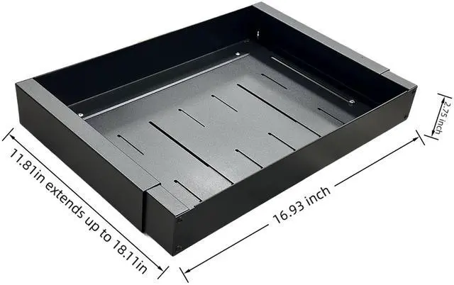 This expandable pull-out cabinet organizer slides smoothly on ball-bearing rails to give quick access to cookware, spices, toiletries, and cleaning supplies. The adjustable width (11.81"- 18.11") fits most cabinet sizes, making it ideal for kitchens, bathrooms, pantries, and RVs. Built from heavy-duty, rust-resistant metal, it installs in minutes using adhesive or screws with no drilling required, a simple way to maximize space and reduce clutter. Dimensions: 16.93" L × 12" W (extends to 18.11") × 2.75" H, Expandable Width: 11.81"18.11", Rails: Smooth ball-bearing slides, Installation: Adhesive or screw mount, Use: Kitchen, bathroom, pantry, RV, under-sink, Package: Metal tray, sliding rails, screws, adhesive, guide.