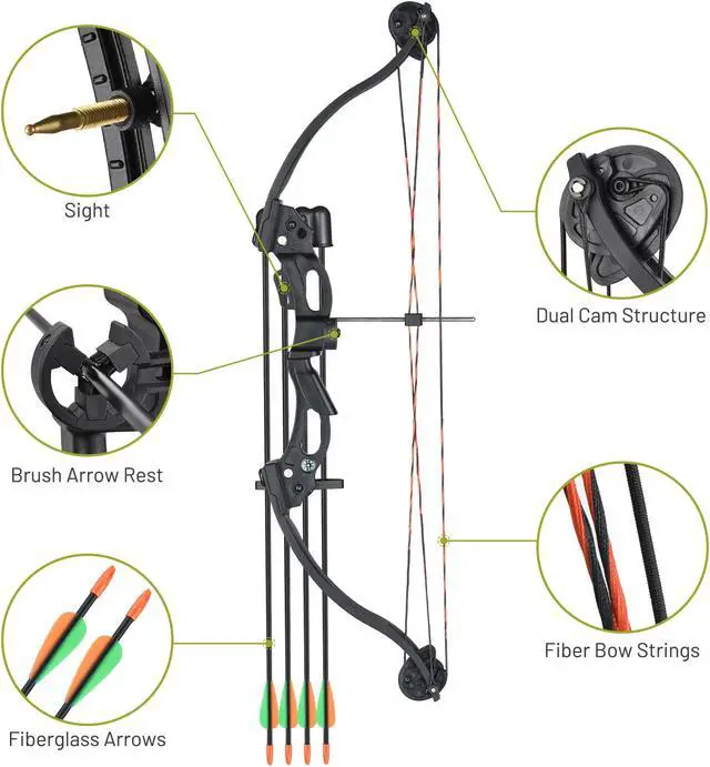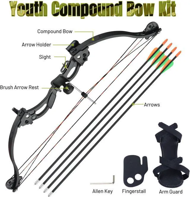 - Designed for Youth - 34" Youth Compound Bow Kit includes a complete compound bow, 4 arrows, fingerstall and arm guard; Right-handed bow with lightweight & simple design for easy learning, ideal for kids, teenagers and beginners aged over 15 to practice shooting, which can help them to develop interests and improve attention