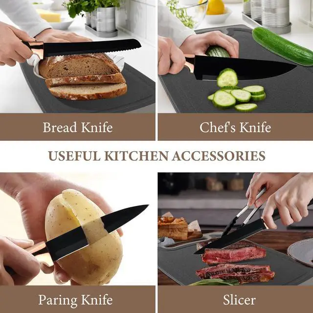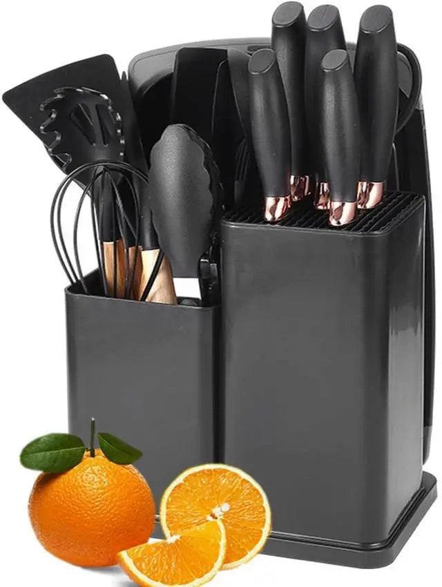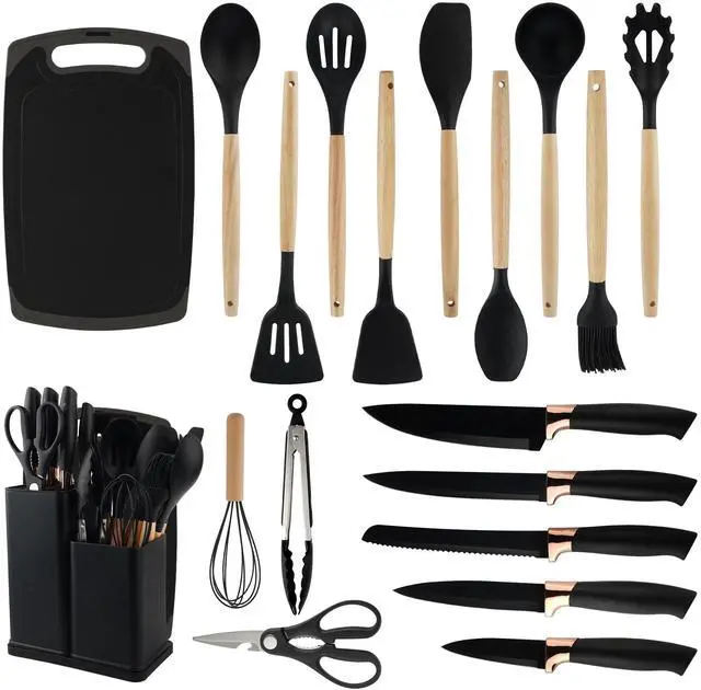 • Complete 19-Piece Set: Includes 11 silicone utensils and a 6-piece knife set.