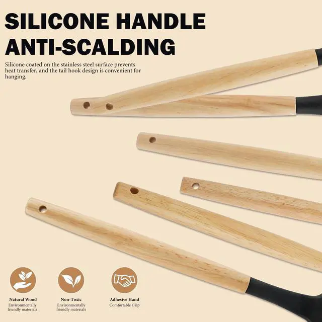 • Premium Food-Grade Materials: Durable and heat-resistant silicone and hardwood.