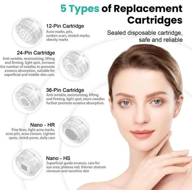 The Hydra Pen H5 has many cartridge options, including H12-pin, H24-pin, H36-pin, H-Round Nanoneedling, and H-Square Nanoneedling cartridges. These versatile options allow beauty professionals to customise treatments for various skin types and specific procedures, ensuring personalised care and optimal results.