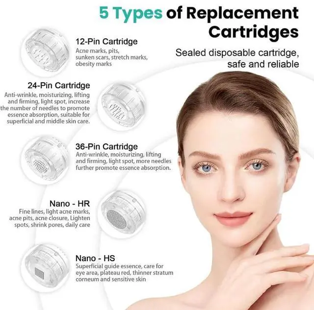 The Hydra Pen H5 has many cartridge options, including H12-pin, H24-pin, H36-pin, H-Round Nanoneedling, and H-Square Nanoneedling cartridges. These versatile options allow beauty professionals to customise treatments for various skin types and specific procedures, ensuring personalised care and optimal results.