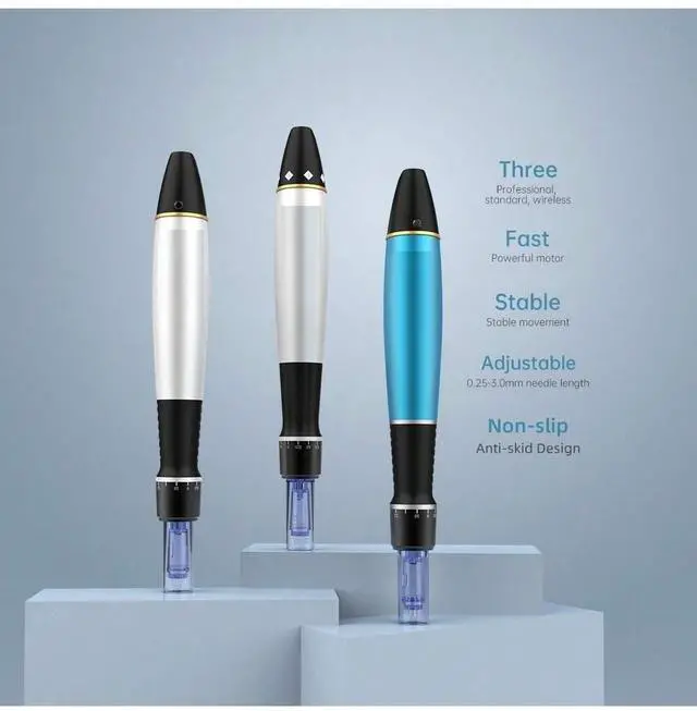 The A1 works by using its advanced oscillating vertical needling technology to create tiny, controlled micro-wounds in the skin. This process triggers the skin's natural healing response, stimulating the production of new collagen and elastin to improve skin texture, tone, and reduce the appearance of fine lines, wrinkles, and scars. The pen also creates micro-channels that enhance the penetration of skincare products, increasing their efficacy.