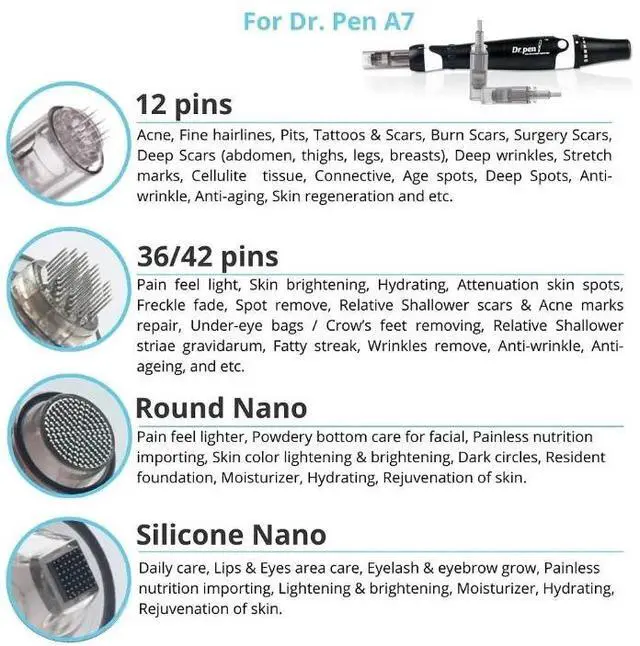 We stock a variety of ultra fine Dr Pen A7 Needle cartridges From 9pins to nano needle cartridges.