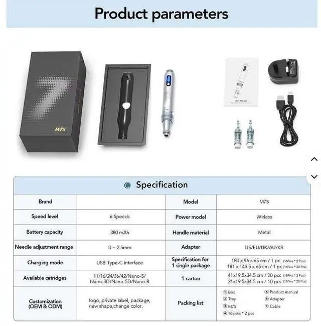 We stock a variety of M7S needle cartridges From 11 pins to nano needle cartridges. The M7S cartridges also feature the finest needle gauge pin (0.18) on the market for less discomfort and lighter trauma to the skin(11 pin & 16 pin)