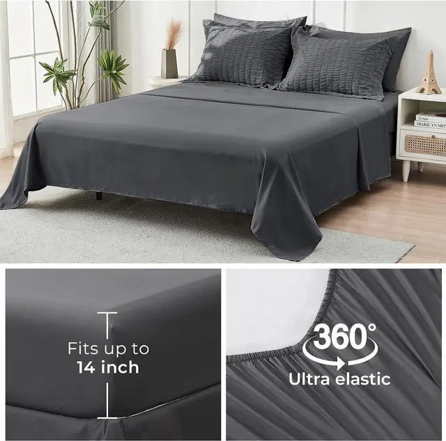 [DEEP POCKET] - Our stretchy deep-pocket fitted sheet easily grips any 12-15 inch mattress and stays in place no matter how you toss and turn on the bed. The soft brushed microfiber fabric provides just the right amount of warmth and comfort.