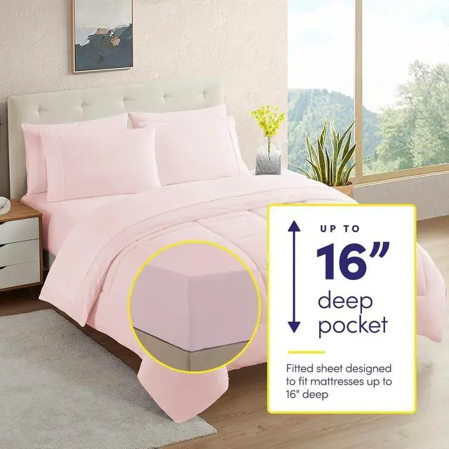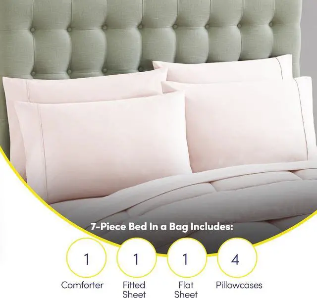 OUTSTANDING 7 PIECE SET - Ready to update your bedroom decor? Get everything you need in one set! This soft and comfortable down alternative comforter set includes all you need to transform your bed into a home décor dream. In each pre-packaged set you will receive 1 all season brushed microfiber comforter, 1 fittd sheet, 1 flat sheet, and 4 pillowcases. Update your bedding with our Sweet Home Collection 7 Piece Bed in a Bag Comforter Set today!
