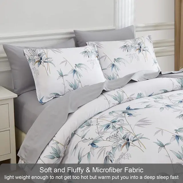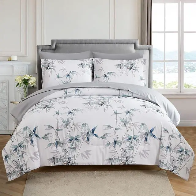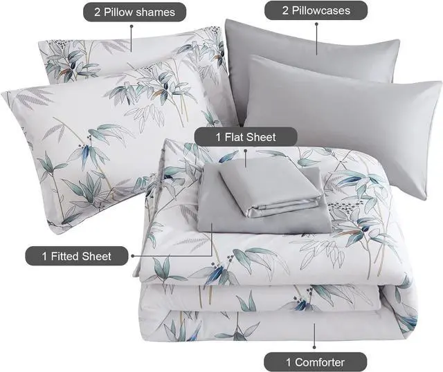 Elegant Floral Leaves Design: The leaves bed in a bag comforter set queen size make the bedding elegant and unique. Grey with blue leaves on white comforter sets, makes people feel like being in the nature and escapes from the hustle and bustle of the city. Take a deep breath and relax yourself in the lush forests. The bamboo beding queen set comforter easy to coordinate and integrate with your rooms décor. It is also a perfect holiday gift for family and friends.