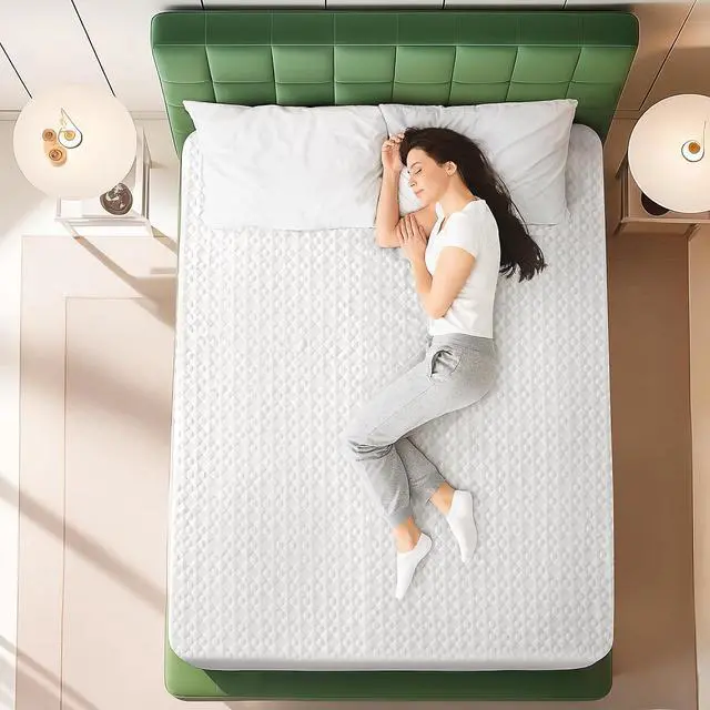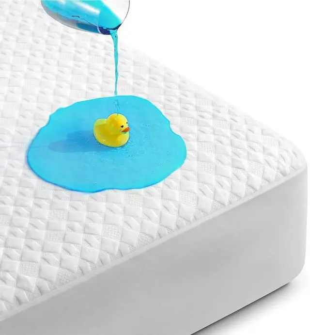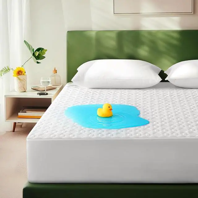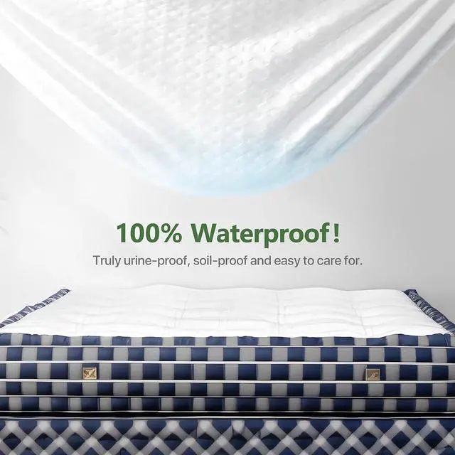 Protect your mattress and enhance your sleep quality with this King Size Waterproof Mattress Protector, crafted from ultra-soft bamboo viscose fabric. Designed to be breathable, cooling, and noiseless, it ensures a peaceful nights rest while safeguarding against spills, sweat, and allergens. The high-density TPU waterproof layer offers complete moisture protection without the crinkling sound common in plastic covers. This protector features a quilted top layer for extra softness and airflow, making it comfortable to sleep directly on. With a deep-pocket skirt that fits mattresses from 5" to 21", it stays securely in place on most king-sized beds, even with a pillow-top or foam topper.