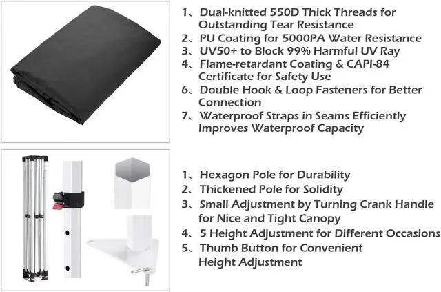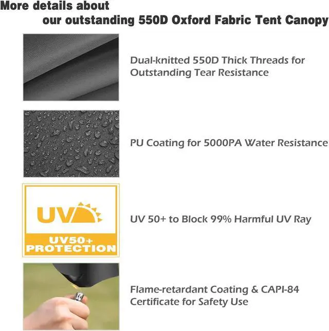 - Weather Resistance for Outdoor Business - 550D Oxford Fabric with PU coating, UV-resistant & water-proof, tough enough to withstand different weather conditions