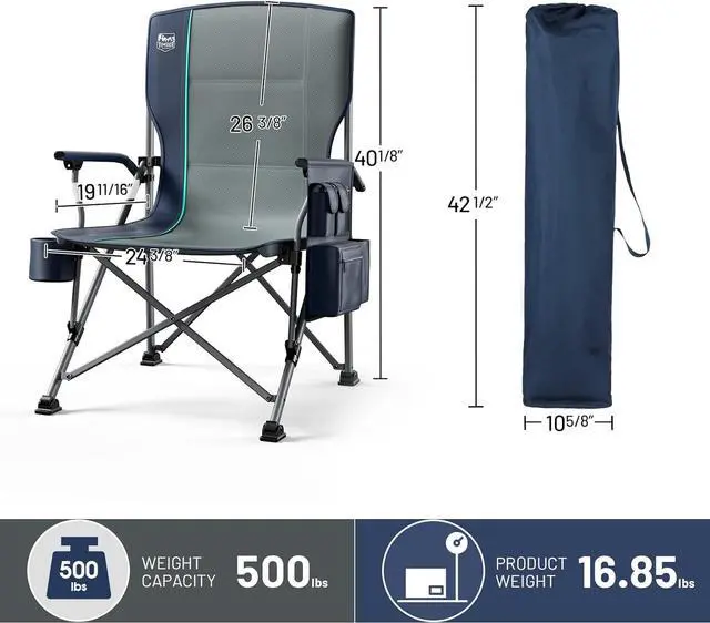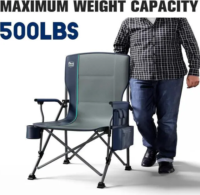 TIMBER RIDGE Oversized Folding Camping Chair High Back Heavy Duty for Adults Support up to 500lbs with Cup Holder, Side Pocket Cooler Bag