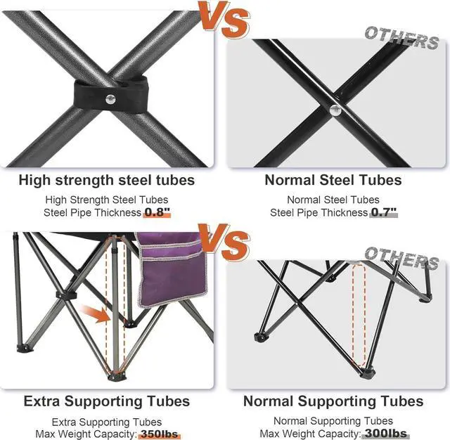 HEAVY DUTY CAMPING CHAIR DURABLE AND RELIABLE - The foldable lawn chair is built with a durable structure and high-quality materials, It has a maximum weight capacity of 350 pounds ( 158.8 kilograms) and ensuring long-lasting durability and high reliability for long-term outdoor use.