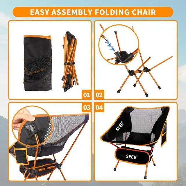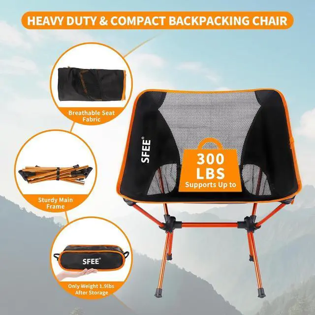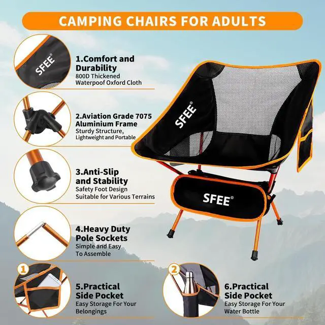 Comfort & Durability: Sfee folding camping chairs are made of 800D Oxford cloth with heavy duty high-strength aircraft-grade 7075 aluminum rustproof alloy frame. Both durable and naturally resistant to wrinkles. The frame made of heavy-duty aluminum ensures the stability and durability of this camping chair, it is capable of taking weight up to 330 lbs. Breathable mesh back keeping you comfortable and cool throughout long sessions. Folding chair is perfect for camping, BBQ, picnics, beach.