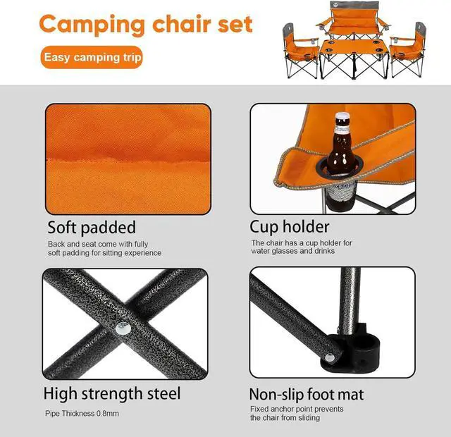 : Easy to set up and take down. Quick folding capability makes this the perfect camp furniture set for any time you are on the go!
