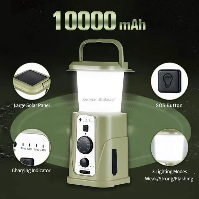 3 light modes: low light, high light and SOS flashing alarm (long press). 4-Battery charging lights (25% 50% 75% 100% power indicator). Which is equipped with low consumption LED lights, provide ultra bright 360 ° light in lantern mode, suitable for indoor or outdoor activities. IPX3 rainproof.
